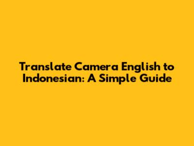 Translate Camera English To Indonesian: A Simple Guide