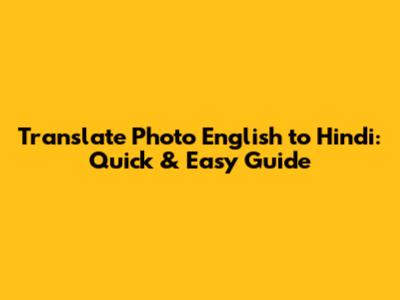 Translate Photo English To Hindi: Quick & Easy Guide