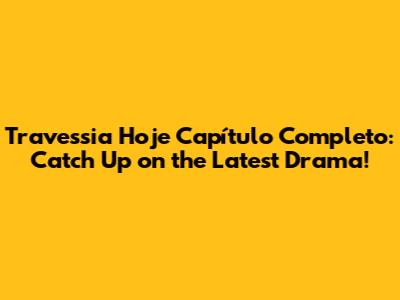 Hey guys! Are you trying to catch up on the latest happenings in Travessia? You're definitely not alone! This telenovela has everyone buzzing, and missing an episode feels like a major crisis. If you're searching for "Travessia Hoje CapĂ­tulo Completo," you've come to the right place. Let's dive into how you can watch the full chapter online and what makes this show so captivating.