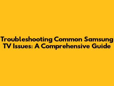 Troubleshooting Common Samsung TV Issues: A Comprehensive Guide