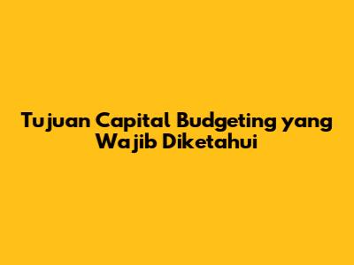 Tujuan Capital Budgeting Yang Wajib Diketahui