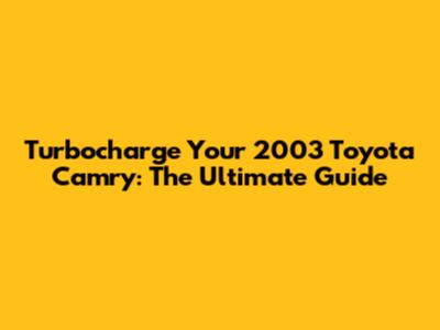 Turbocharge Your 2003 Toyota Camry: The Ultimate Guide