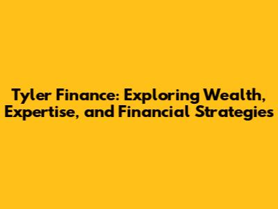 Tyler Finance: Exploring Wealth, Expertise, And Financial Strategies