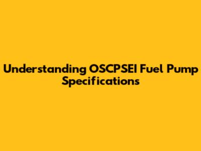 Understanding OSCPSEI Fuel Pump Specifications