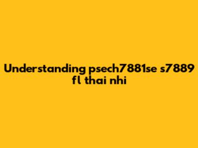 Understanding Psech7881se S7889 Fl Thai Nhi