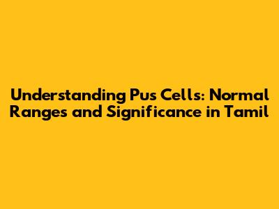Understanding Pus Cells: Normal Ranges And Significance In Tamil