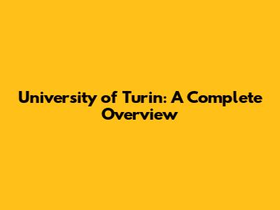 University Of Turin: A Complete Overview