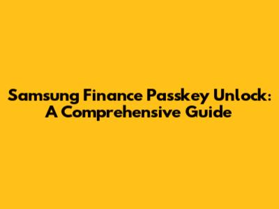Unlock Samsung Finance Passkey: A Comprehensive Guide