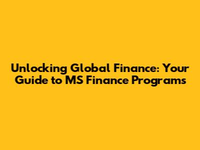 Unlocking Global Finance: Your Guide To MS Finance Programs