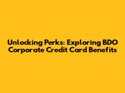 Unlocking Perks: Exploring BDO Corporate Credit Card Benefits