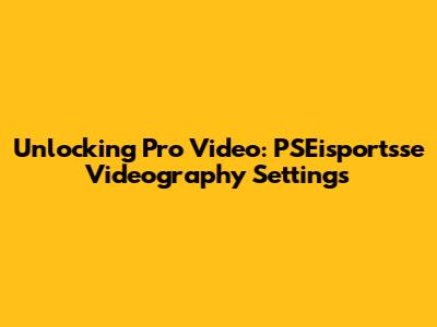 Unlocking Pro Video: PSEisportsse Videography Settings