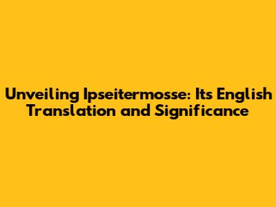 Unlocking The Mystery: What Is 'Ipseitermosse' In English?