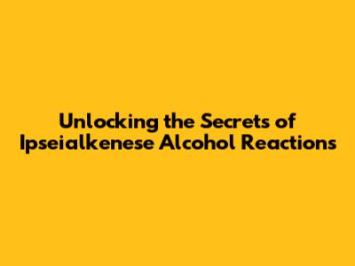 What Exactly Are Ipseialkenese Alcohol Reactions, Anyway?