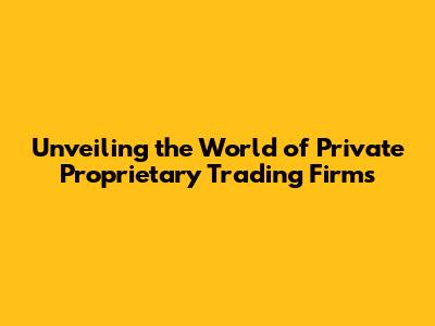 Unlocking The World Of Private Proprietary Trading Firms