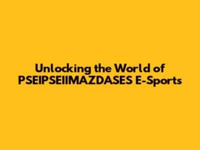 Unlocking The World Of PSEIPSEIIMAZDASES E-Sports