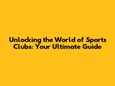 Unlocking The World Of Sports Clubs: Your Ultimate Guide