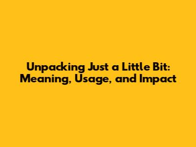 Unpacking 'Just A Little Bit': Meaning, Usage, And Impact