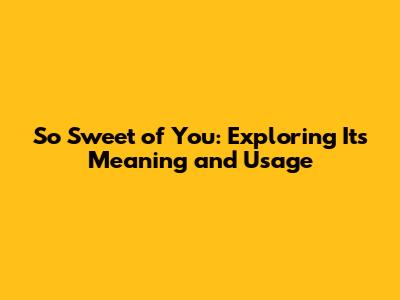 Unpacking 'So Sweet Of You': Meaning & Usage