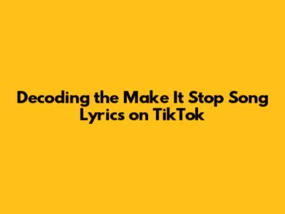 Unraveling The Mystery: 'Make It Stop' Lyrics On TikTok
