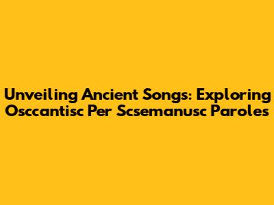 Unveiling Ancient Songs: Exploring Osccantisc Per Scsemanusc Paroles