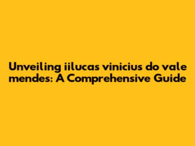 Unveiling Iilucas Vinicius Do Vale Mendes: A Comprehensive Guide