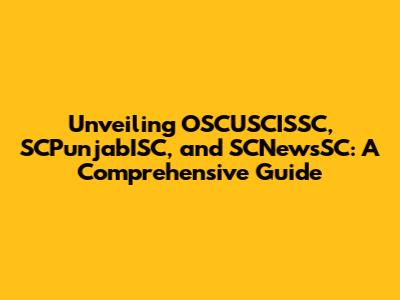 Unveiling OSCUSCISSC, SCPunjabISC, And SCNewsSC: A Comprehensive Guide