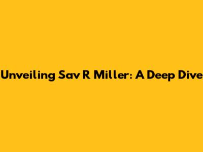 Unveiling Sav R Miller: A Deep Dive