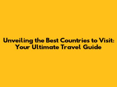 Unveiling The Best Countries To Visit: Your Ultimate Travel Guide