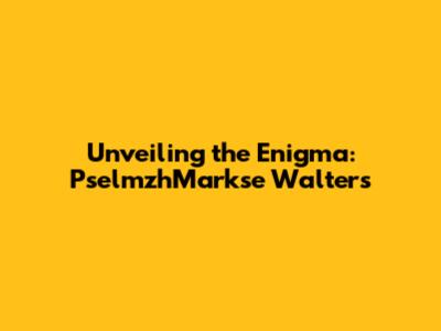Unveiling The Enigma: PselmzhMarkse Walters