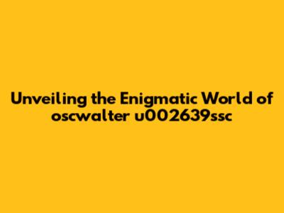 Decoding the Mystery: What Exactly is oscwalter u002639ssc?