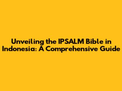 Hey guys! Ever heard of the IPSALM Bible in Indonesia? If not, no worries, because today we're diving deep into everything you need to know about this significant religious text. We're going to explore its origins, its role in Indonesian society, and where you can find it. So, grab a coffee, get comfy, and let's get started on this exciting journey of discovery. You know, understanding religious texts can be super fascinating, and the IPSALM Bible is no exception. This guide is designed to be your go-to resource, whether you're a seasoned scholar or just curious about learning something new. We'll cover everything, from the specific translations to the cultural impact, so you'll have a complete picture by the time we're done. Ready? Let's go!