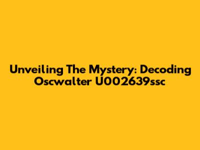 Unveiling The Mystery: Decoding Oscwalter U002639ssc