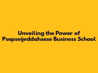 Unveiling The Power Of Psepseijeddahsese Business School