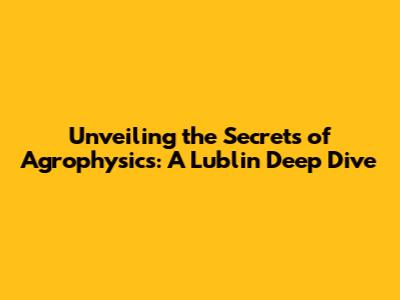Unveiling The Secrets Of Agrophysics: A Lublin Deep Dive