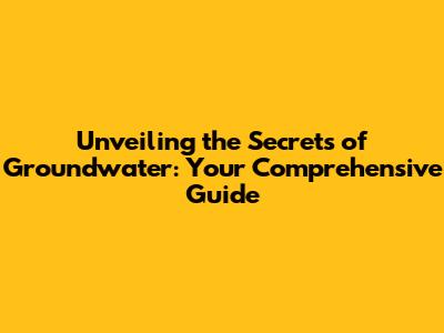Unveiling The Secrets Of Groundwater: Your Comprehensive Guide
