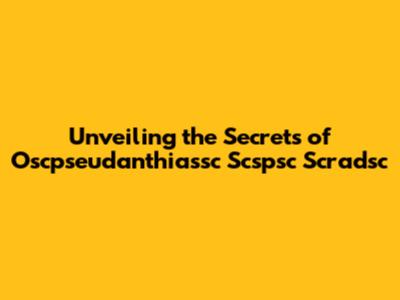 Unveiling The Secrets Of Oscpseudanthiassc Scspsc Scradsc