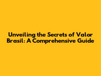 Unveiling The Secrets Of Valor Brasil: A Comprehensive Guide
