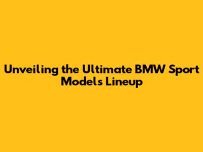 Unveiling The Ultimate BMW Sport Models Lineup