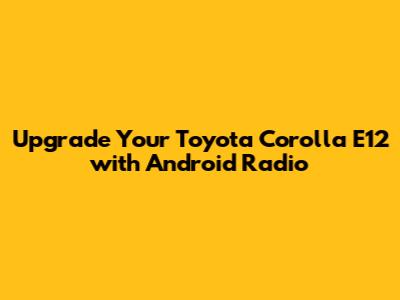 Why Android Radio is a Game Changer for Your Corolla E12