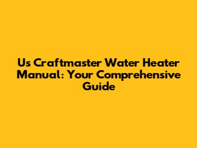 Us Craftmaster Water Heater Manual: Your Comprehensive Guide