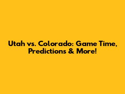 Utah Vs. Colorado: Game Time, Predictions & More!