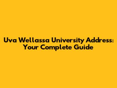 Uva Wellassa University Address: Your Complete Guide