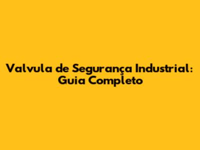 Valvula De Segurança Industrial: Guia Completo