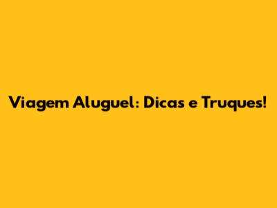 Viagem Aluguel: Dicas E Truques!