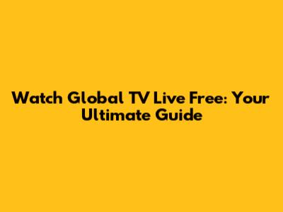 Watch Global TV Live Free: Your Ultimate Guide