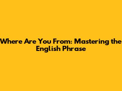 Where Are You From: Mastering The English Phrase
