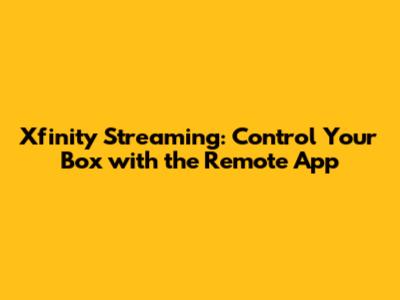 Xfinity Streaming: Control Your Box With The Remote App