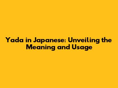 Yada In Japanese: Unveiling The Meaning And Usage