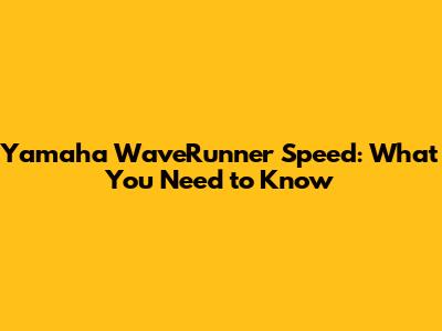 Yamaha WaveRunner Speed: What You Need To Know